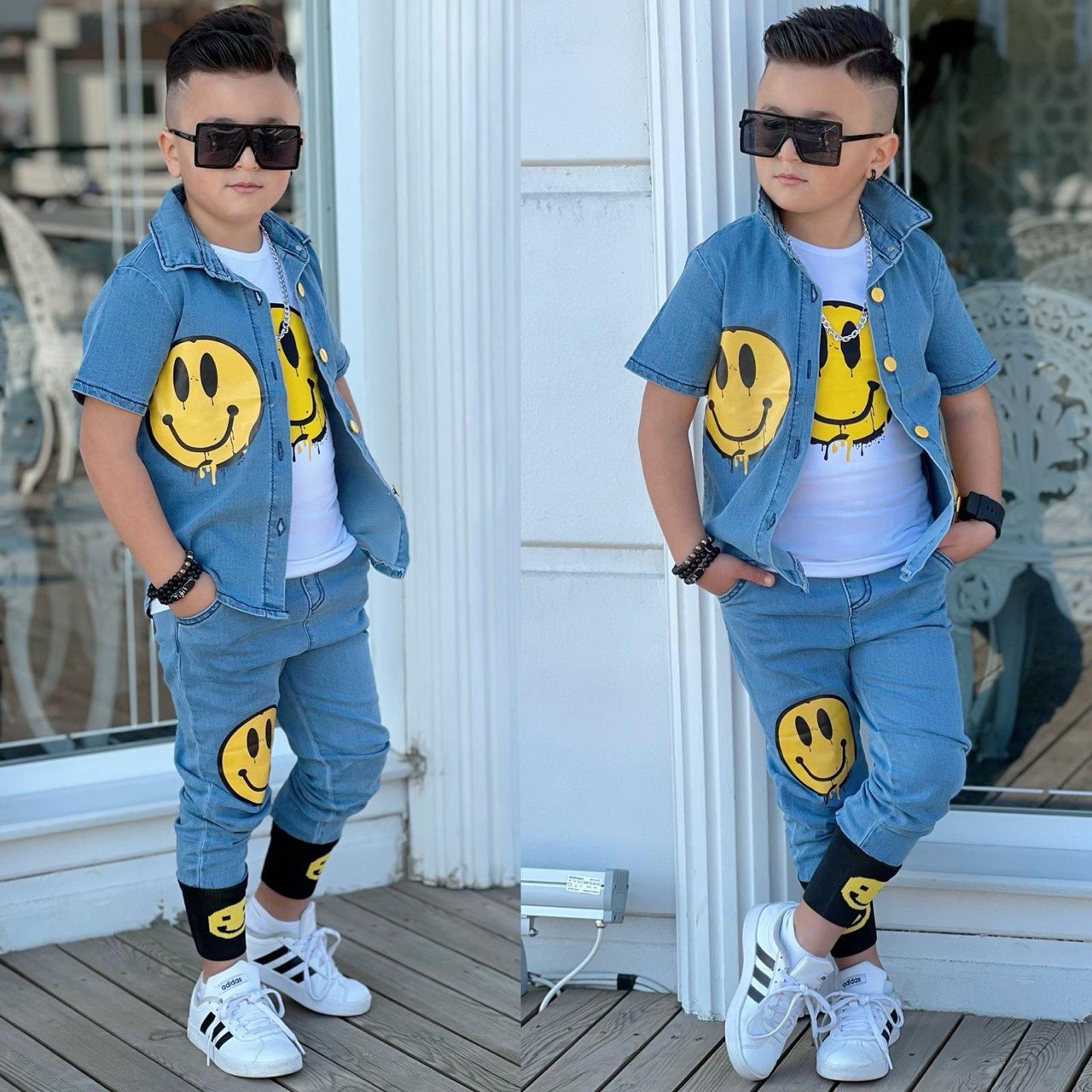 Özel tasarımıyla, çocukların enerjisini yansıtan mavi-beyaz renklerdeki bu 3'lü set, günlük kullanım için idealdir. - Denim kumaştan üretilmiş olan kot ceket, pantolon ve badi, dayanıklılığı ve konforu bir arada sunar. - Standart kol tipi ile rahat hareket etme imkanı sağlarken, gömlek yakası detayı şıklığı tamamlar. - Lastikli paça tasarımı sayesinde kolay giyilip çıkarılabilir ve mükemmel uyum sağlar. - Dijital baskı teknolojisiyle üretilen emojiler, her yaştan çocuğun beğenisine hitap eder. - 11-12 yaş aralığındaki çocuklar için uygun bedeniyle uzun süreli kullanım vaat eder. - Klasik ortamlarda bile stil sahibi görünmenizi sağlayacak basic siluetiyle dikkat çeker. - Orta kalınlıkta denim malzemesi mevsim geçişlerinde ideal koruma sunar. - CePli yapısıyla minimalist bir tarza sahip olmanızı sağlar; ekstra depolama alanına ihtiyaç duymadan pratiklik kazandırır. - Çocuklar için özel olarak tasarlanmış, mavi-beyaz renklerdeki baskılı kot ceket, pantolon ve badi seti ile şıklığı ve rahatlığı bir arada sunar.; - Uzun boy tasarımı ve regular kalıbı sayesinde hareket özgürlüğü sağlar, çocukların günlük aktivitelerinde rahatça kullanmalarına olanak tanır.; - Denim kumaşı dayanıklılığı ve konforu bir arada sunarak uzun süreli kullanım için idealdir.; - Her yaş grubuna uygun olarak tasarlanmış olup, erkek çocukların gardırobuna kolayca uyum sağlar.; - Normal bel kesimi ve lastikli paça detayları ile modern bir görünüm kazandırırken, gömlek yaka tasarımı şık bir dokunuş ekler.; - Cepsiz yapısıyla pratik kullanım sunarken, uzun kol boyu mevsim geçişlerinde ideal koruma sağlar.; - Orta kalınlıkta denim kumaşı mevsim geçişlerinde ideal sıcaklık dengesi sunar.; - 2-12 yaş arası bedenlere uygun olarak tasarlanmıştır; bu sayede çocuğunuzun büyüme dönemine uygunluk gösterir.; - Dijital baskı tekniği ile üretilen baskılar canlı renkler ve net desenler sunarak dikkat çekici bir stil oluşturur.; - Astarsız yapısıyla konforlu bir kullanım vaat ederken, lastik detayları pratiklik katmaktadır.; - Ceket-pantolon-badi set halinde gelen bu ürünle kombin yapmak artık çok daha kolay! - Basic siluetiyle zamansız parçalar arasında yer alarak her zaman moda olan bir seçenektir.; - Klasik ortamlarda bile rahatlıkla tercih edilebilecek tarzda tasarlanmıştır.; - Sürdürülebilirlik detayları içermemesine rağmen kaliteli malzemelerle üretilmiştir.; - Beli lastikli olması sayesinde giyip çıkarması kolaydır ve ekstra konfor sağlar.; - Kemersiz yapısıyla rahatlık sunarken, tüm yaş gruplarına hitap eden geniş kullanım imkanları sunar.