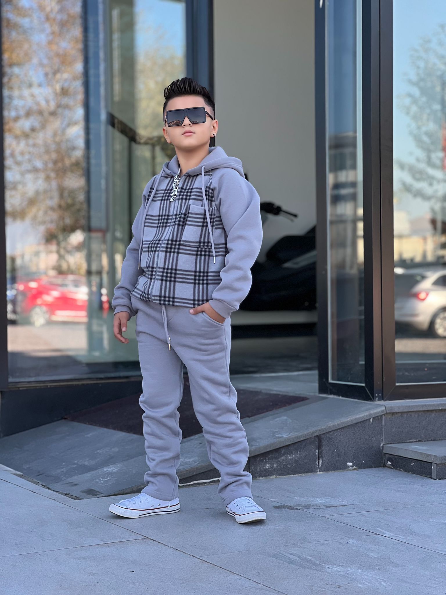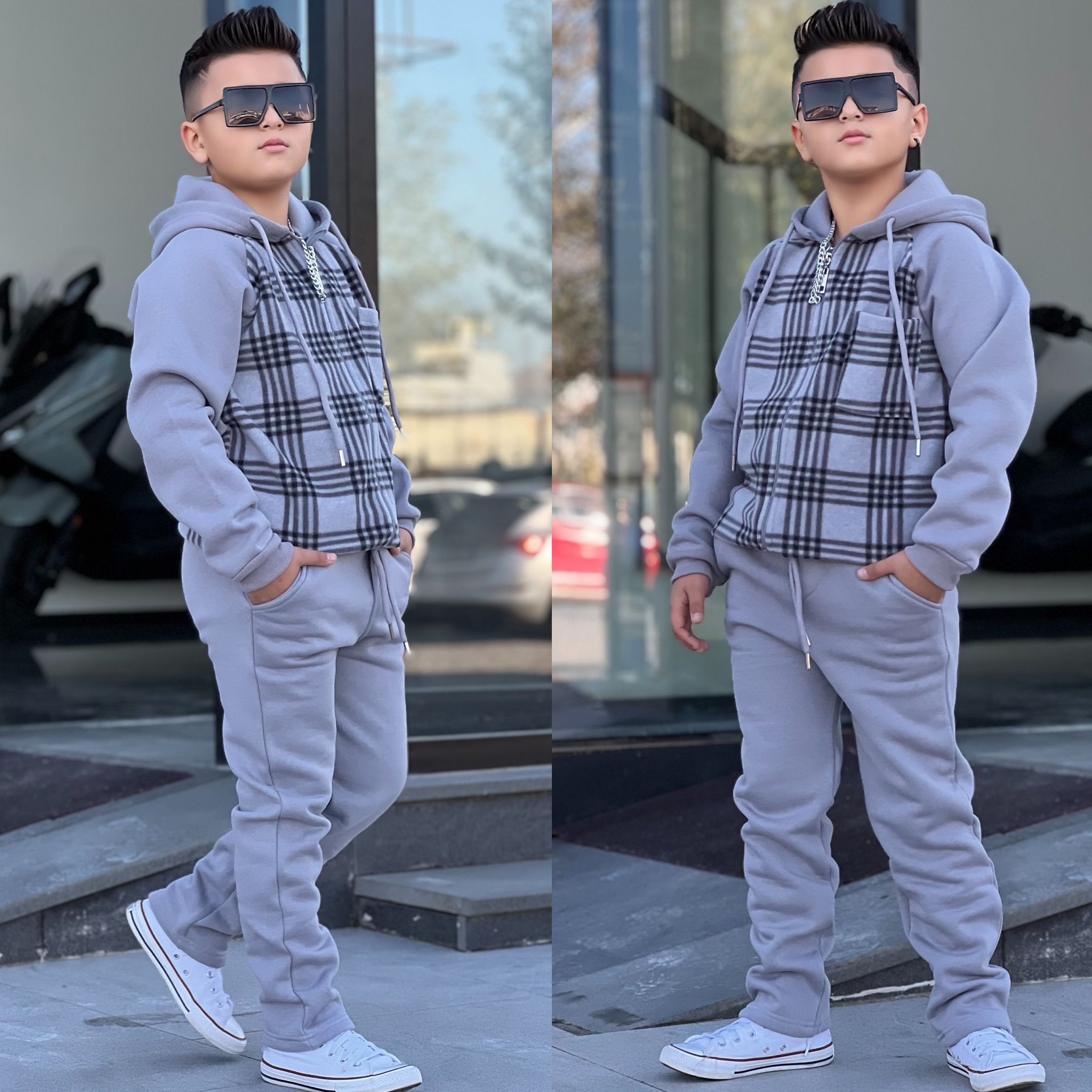 Polar Garnili Fermuarlı Kapüşonlu Bel Lastikli Alt Üst 3ip Şardonlu Kışlık Takım - Bayramlık